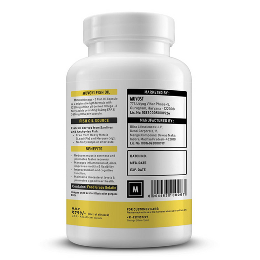 Muvost Omega-3 Fish Oil (30 Capsules), 1250mg